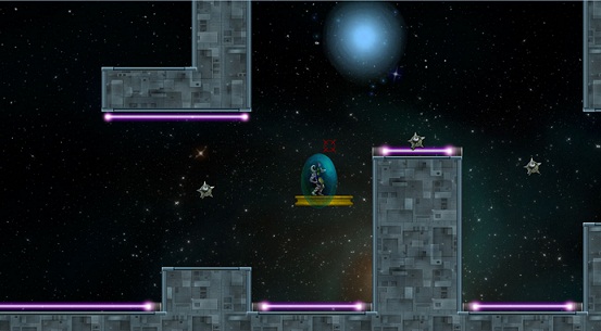 The gameplay consists of using a gravity gun. You jump from platform to platform and when you can’t you use the gravity gun to suck you in the gravity well and while your in the gravity well you are able to recharge your jetpack and move forward from there. There are anti-gravity wells too. You use the two to get through the levels. There are multiple ways to get through a level. My way of completing a level will most likely be different than your way. There are also moving objects that can kill you, but you don’t have to restart the level. When you die they spawn you back to the last main jump you made off of the ground.