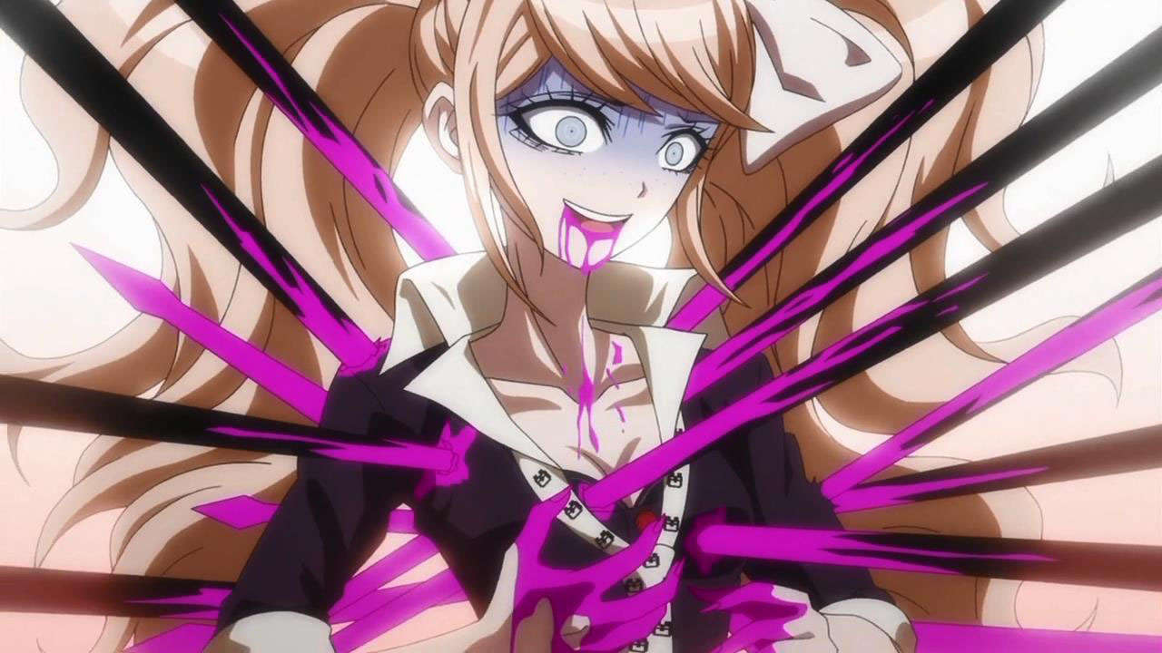 I really liked the murderer execution scenes. That sounds creepy, I know, but the art style was pretty cool. It goes into this flat paper like art style. And each execution was suited the one getting executed. For example the Super-High-Level-Baseballer was pelted with baseballs from a pitching machine.  Also the blood in this show wasn’t red; it was like a hot pink. I guess to get lower TV rating or maybe it was hot pink in the game too, I don’t know.